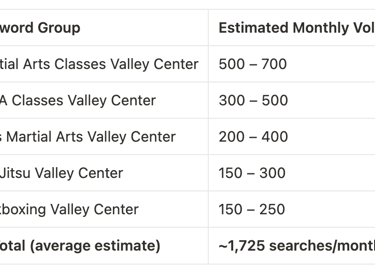 Someone is searching "martial arts studio" or “kids martial arts” in valley center every day.